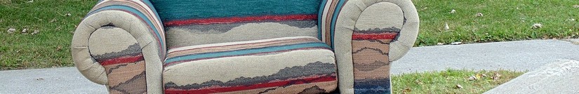 And this: why it is that the furniture most often seen at the side of the road is upholstered? What happens to all the dressers and desks and tables? The office chairs, the little wooden straight-backed things or the chrome and vinyl. Sure, you see them now and again, the occasional mattress or headboard, but far and away the most common item presented to the street is a piece of upholstered furniture.